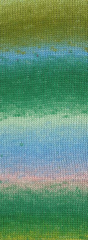 Een zacht garen met kleurverloop van 100% ongemerceriseerd Pima-katoen. Met ongeveer 5 bollen en naald 4,5-5 brei of haak je een basistrui in maat 38-40.