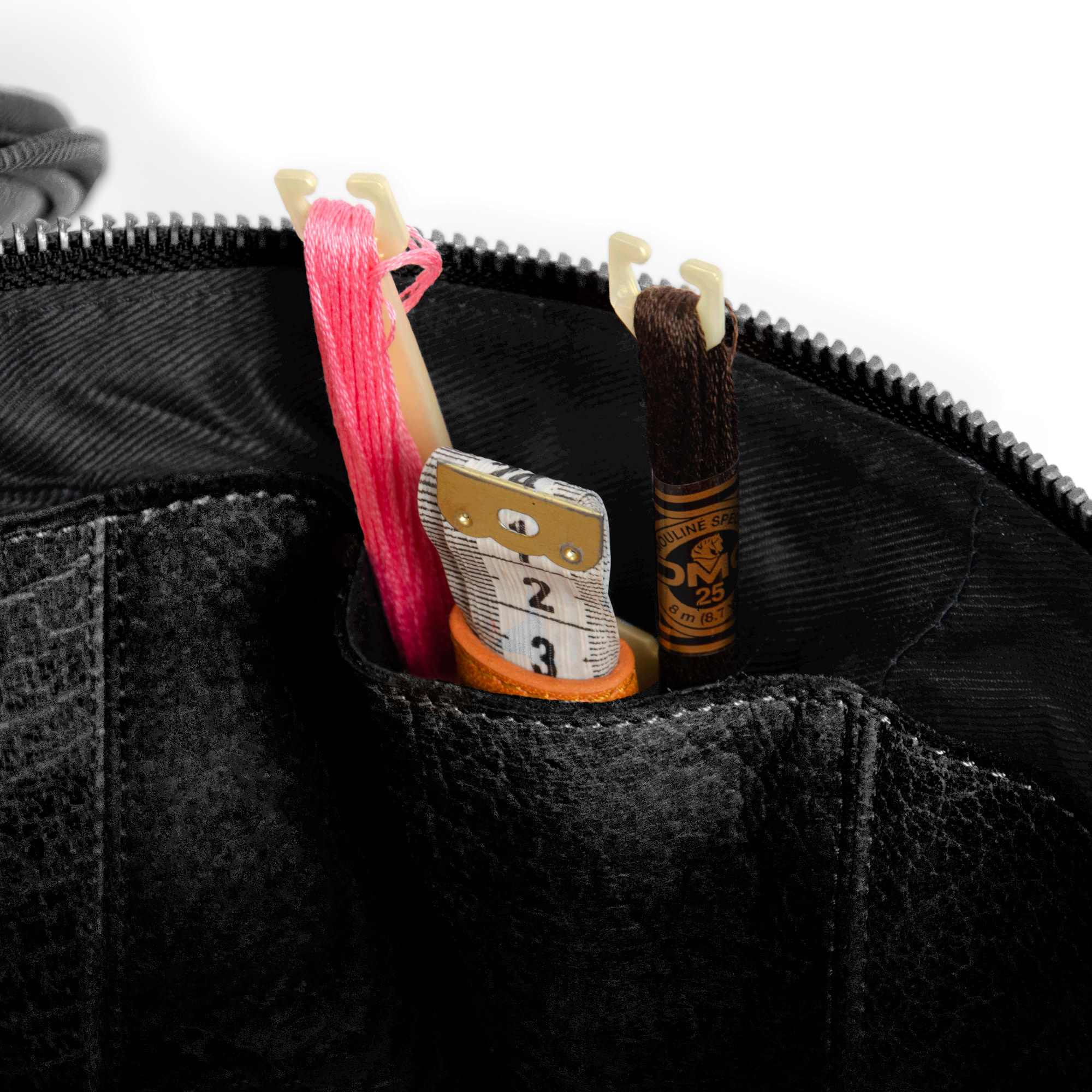 Enturn van Muud is een prachtige projecttas die met de hand is gemaakt en tot in de puntjes is afgewerkt. Met zorgvuldig vervaardigde details maakt de tas het gemakkelijk om je creatieve projecten mee te nemen. De Enturn is eigenlijk het zusje van de Saturn tas. Een echte must-have dus voor als je de Saturn tas al in je bezit hebt. De Enturn heeft een diameter van 23cm en is daarmee iets breder, maar lager dan de Saturn XL. Het formaat van de tas is geschikt voor borduurringen tot 22 cm.