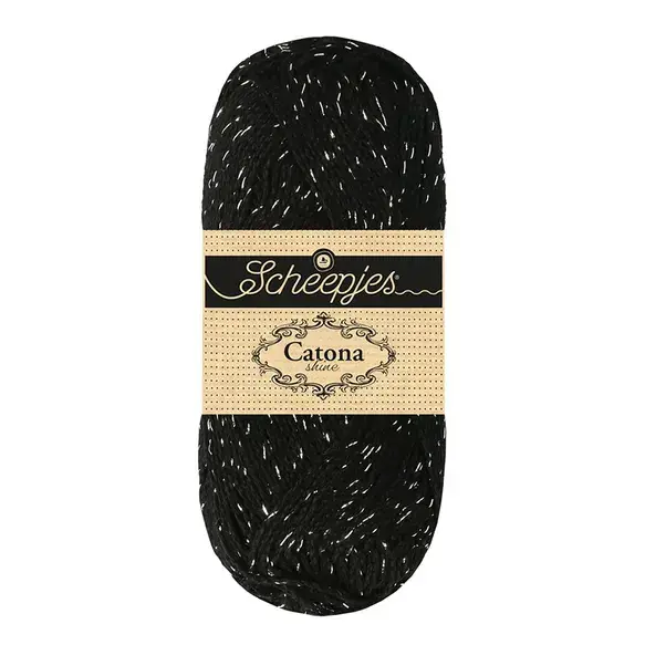 Scheepjes Catona Shine biedt de vertrouwde kwaliteit van Catona, met extra glitter! Door een glitterdraad door het gemerceriseerde katoen te weven, krijgt Catona Shine een lichte schittering zonder in te leveren op het vertrouwde haak- of breigemak. Catona Shine splijt niet en heeft dezelfde stekenverhouding als Scheepjes Catona. Daardoor zijn Catona en Catona Shine perfect te combineren binnen één project. Ideaal om contrast of accenten aan te brengen of een beetje variatie toe te voegen. De metallic draad in zilver-, goud- of regenboogglitter is zorgvuldig afgestemd op een bestaande Catona-kleur. Scheepjes Catona Shine leent zich uitstekend voor allerlei projecten, van kleding en accessoires tot amigurumi, speelgoed en woondecoratie. Door de subtiele glinstering is het ook een goede keuze voor het maken van feestelijke cadeaus en decemberprojecten.