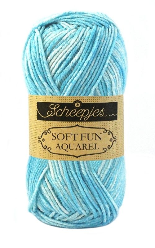 Scheepjes Softfun Aquarel is een echte alleskunner. Elke bol weegt 50 gram en heeft een looplengte va 140 meter. De aanbevolen naalddikte is 3.50-4.00 mm. Deze zijdezachte katoen- en acryl melange in DK weight heeft het allemaal. Het garen voelt zacht aan