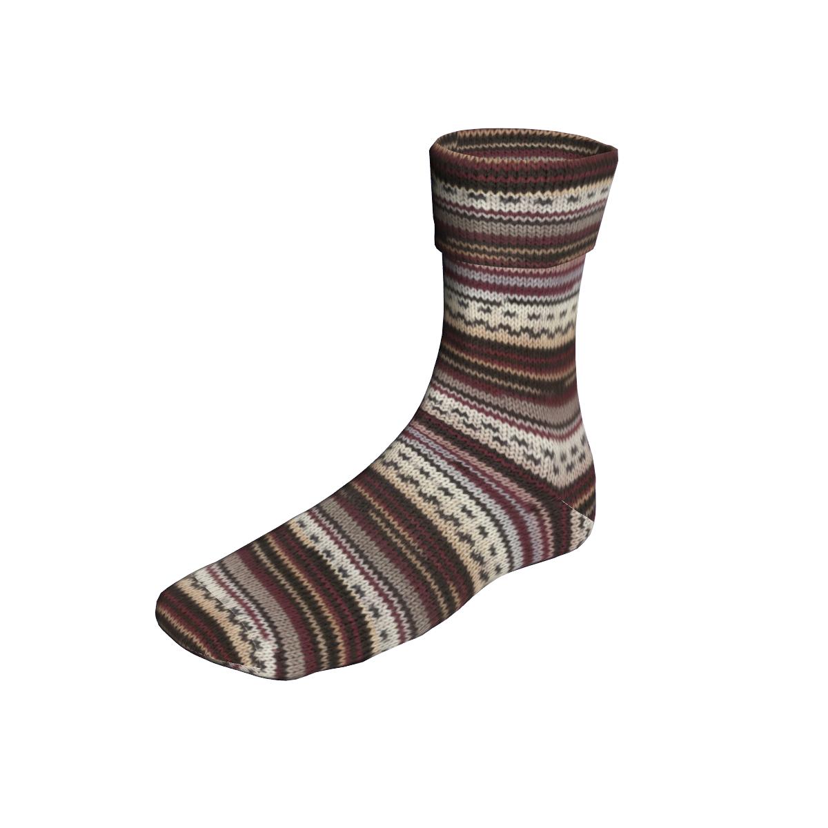Lang Yarns Super Soxx 4-Ply is een kleurrijk 4 draads sokkenwol van een mix van wol en polyamide. Met 1 bol brei je een paar sokken (maat 36 - 46) met een streep patroon.