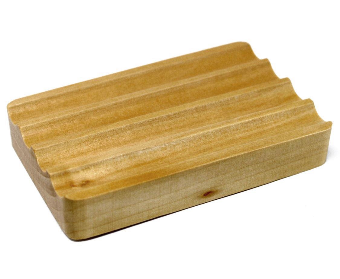 Houten zeepbakje met gleuven waardoor het water makkelijk wegloopt en de zeep snel droogt.